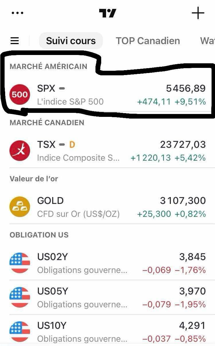 Le TSX a suivi les marchés américains tant dans les baisses que dans les hausses. En effet, le 4 avril, l’indice a chuté de près de 4 % en une seule journée, tandis que le 9 avril, il a enregistré une hausse de 5 %.